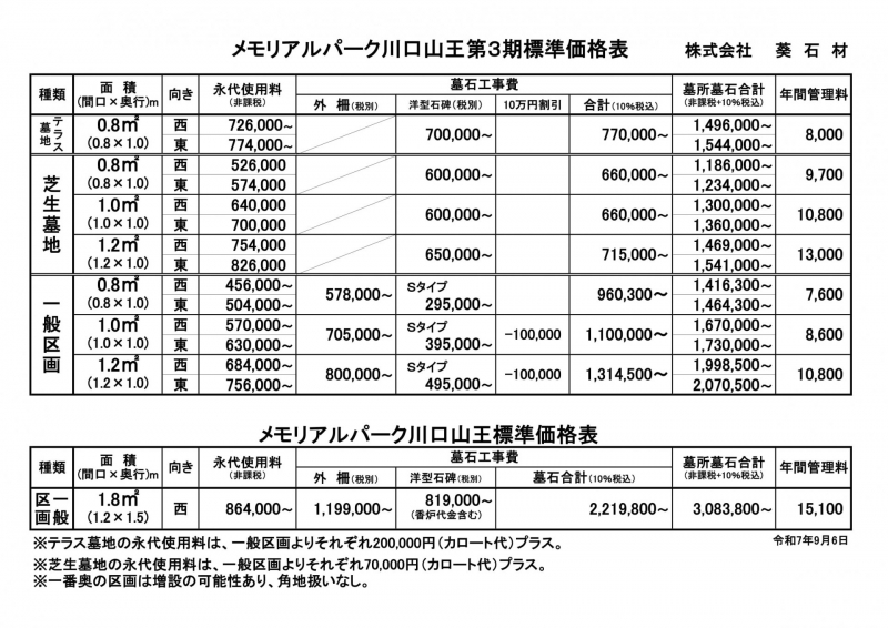 人気の芝生墓所 (0.8㎡) 新規開放!!